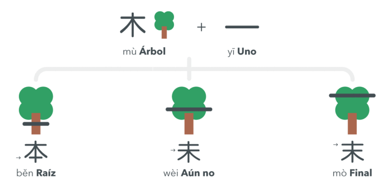 Como ya hemos visto, existen en chino varios caracteres que se forman al combinar los radicales 木 (árbol) y 一 (uno). […]