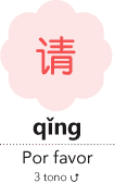 Por eso es una buena idea añadir qǐng 请 que significa por favor, delante del verbo y así transformamos una orden en una petición. En una sociedad en la que las formas son tan importantes, usar siempre esta palabra mágica es más que recomendable: