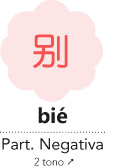 Otra cosa más. Además de funcionar como partícula negativa, bié 别 también es un adjetivo muy frecuente que significa “otro (diferente)”: