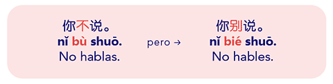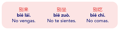 La manera más fácil de negar a alguien que haga algo en chino es con la palabra bié 别. Basta colocarla delante de un verbo para transformar la frase en una prohibición: