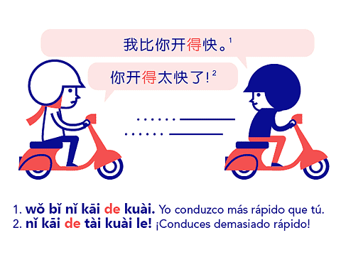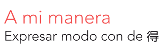 Antes que nada, vamos a presentarte una nueva partícula, de 得 (ten cuidado de no confundirla con este de 的). Esta partícula nos va a servir para expresar modo, es decir, la manera en que se hace algo. Tan sólo debemos colocarla justo detrás del verbo. Observa qué sencillo: