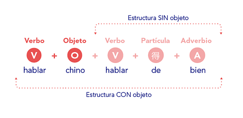 ¡RECUERDA!Cuando el verbo lleva objeto se debe usar la siguiente estructura: Verbo + Objeto + Verbo + de 得.