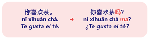 Como ves, el orden de las palabras en ambas frases es el mismo. La única diferencia es que la segunda lleva ma 吗 al final. Tampoco es necesaria ninguna entonación especial como hacemos en español al preguntar. De hecho ma 吗 es tono neutro, así que la pregunta acaba de forma suave y sin tono.